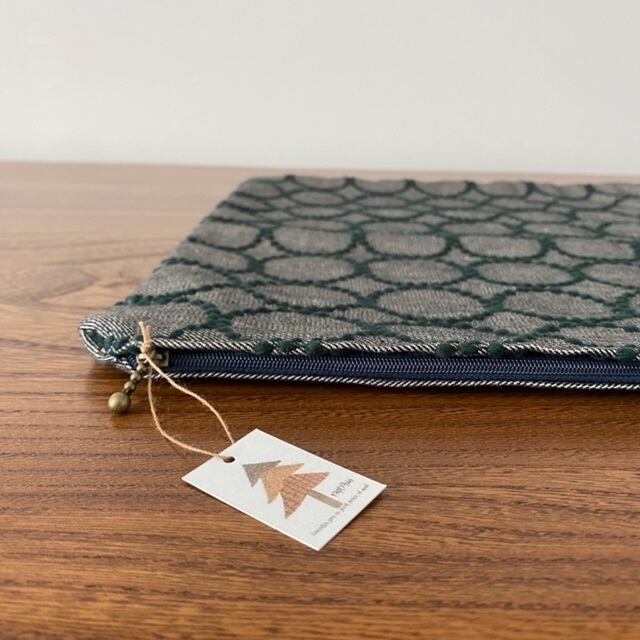 こちらのミナペルホネンtambourine生地は、適度な張りのある中地の生地ですので接着芯は使用していません。表面1角と裏面は同じテキスタイルの無地生地を使用し、ファスナーの位置は下部に取り付けました。
