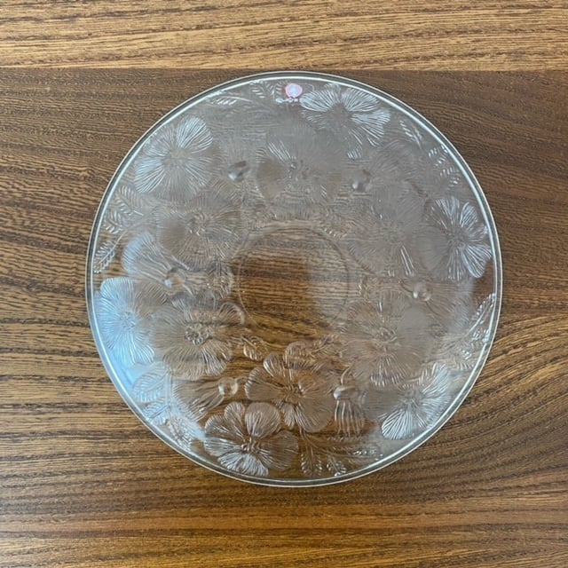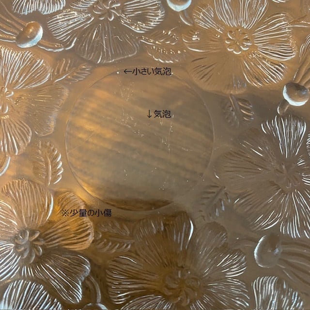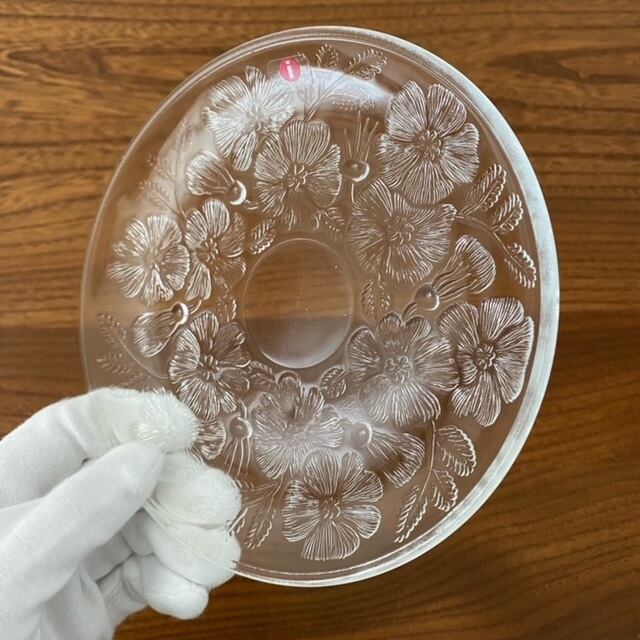 しっかりとした厚めのガラスで、裏面に施された花模様は奥行きがあり立体的なデザイン。