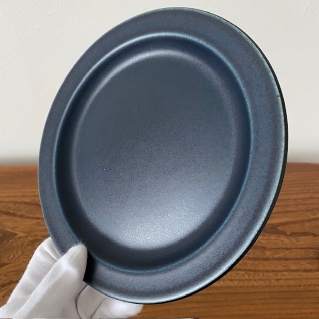 ダークブルーの釉薬は、あえて一点一点異なった雰囲気になるように仕上げられ、縁のかすれ具合など趣があり、和食器にも合いそうな素敵な食器です。
