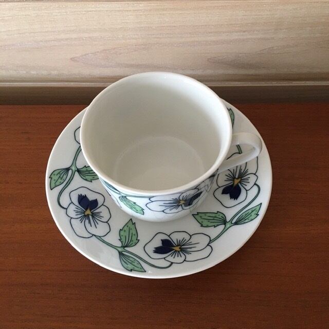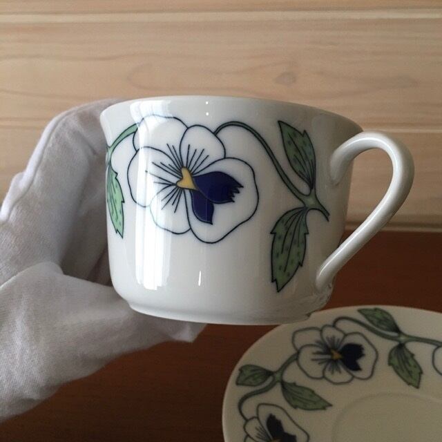 パンジー若しくはスミレの花があしらわれていて、大変清楚な雰囲気が漂うカップ&ソーサーです。