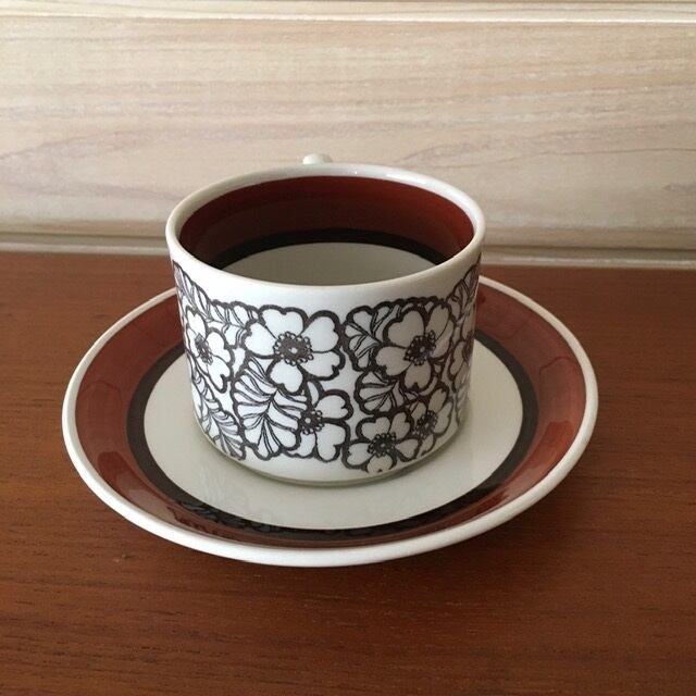 筆で描かれた美しい赤茶色とそれを引き締める黒いラインが花を盛り立てていて、一体感のある素敵なデザイン。 花柄でありながら、落ち着いた配色でかわいくなりすぎていないのが北欧らしく、魅力あふれる素敵な表情を持つ商品です。