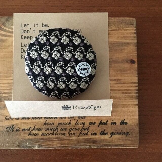 黒の生地にベージュ小花と茶色の実を連続刺繍。
