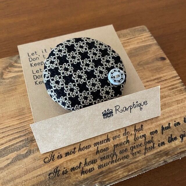 ブラック生地にベージュ色の花模様を刺繍しました。シックな装いにも合う、大人可愛いデザインのブローチです。