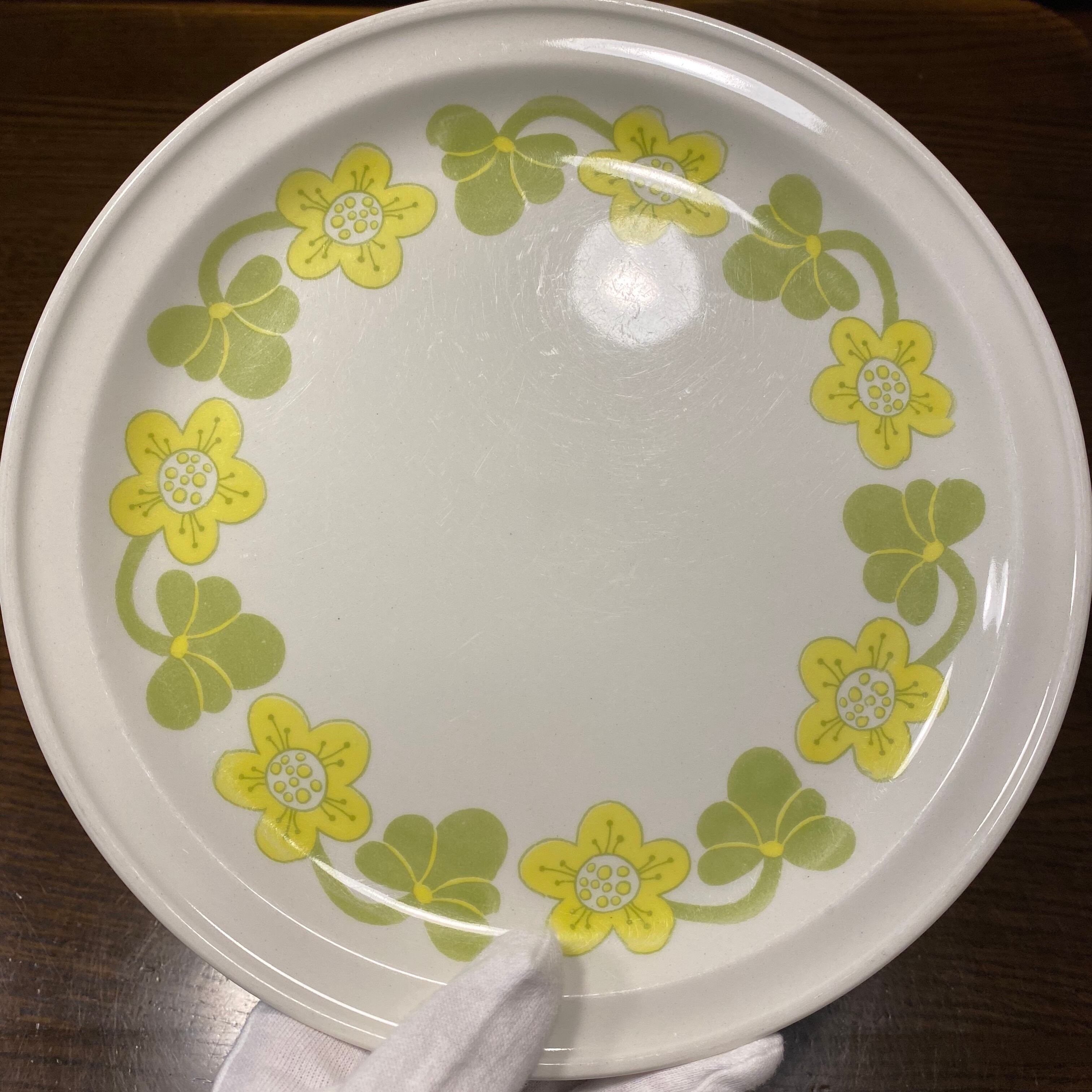 Sannaはレモンイエローのお花と黄緑色の葉っぱが、明るく爽やかな雰囲気のプレートです。お花のイラストがレトロでとても可愛らしいです。