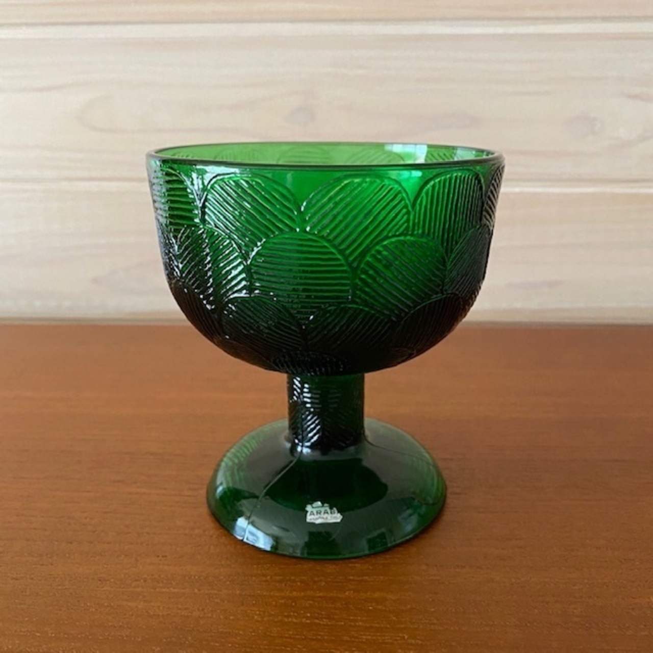 フィンランドの老舗ガラスメーカーNuutajarvi(ヌータヤルヴィ)社の 「Miranda」シリーズ(グリーン)・デザートボールです。