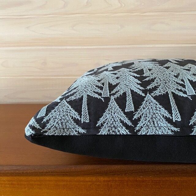 静寂な森をイメージして作られたテキスタイルで、木々の密な刺繍で高級感漂う雰囲気です。