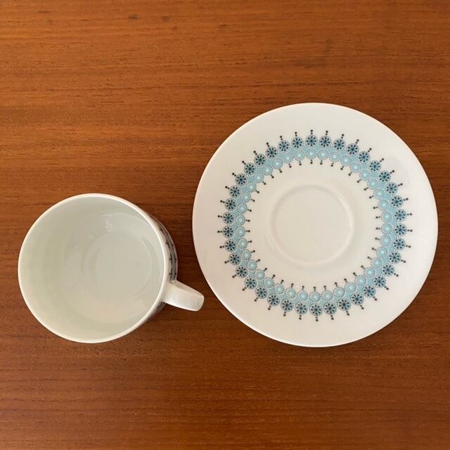 ARABIA社のLouhi/ロウヒは貴重なシリーズで、白を基調とし、淡い水色と細かい模様の連続模様が非常に美しいデザインです。