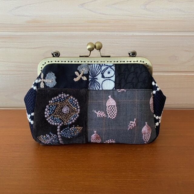 ミナペルホネンfabric handmade パッチワークガマ口バック⑥