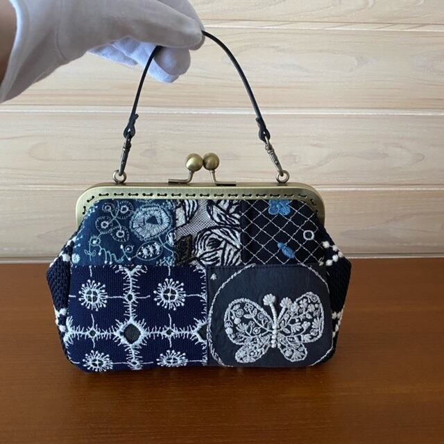 ミナペルホネンhandmade forest wing パッチワークガマ口バック③