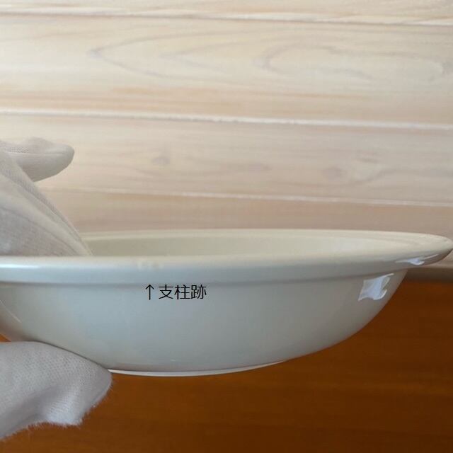 ※こちらのスープボウルは製造工程上、焼成時の支柱跡がフチ2~3ヶ所に表れることが多いもです(写真参照)