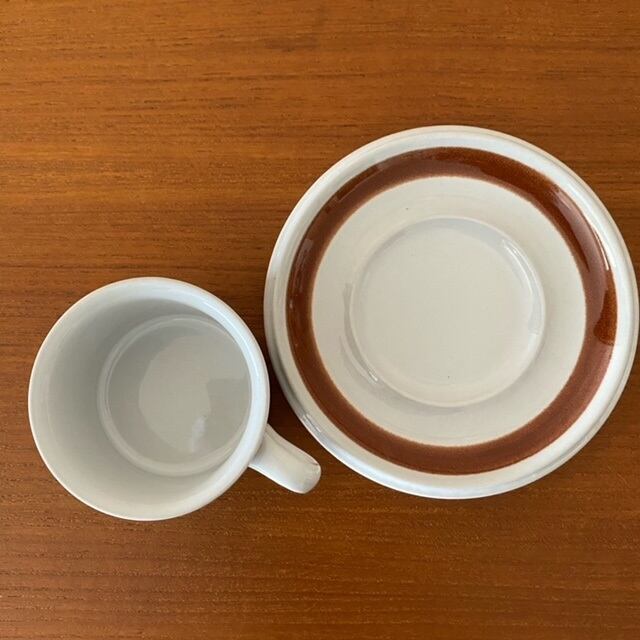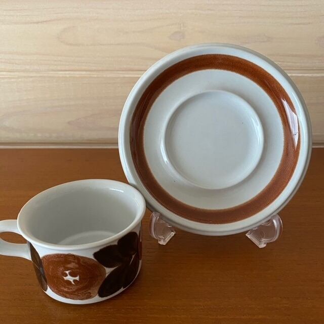 コンディション: カップの持ち手付近に製造時の凹みがありますが釉薬の下になります。ソーサーに微細な黒点がございますが、小傷は少なく全体的に良好なヴィンテージコンディションです。