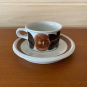 Rosmarinとはフィンランド語でローズマリーの意味。ぽってりとした茶色の花は絵付師によって描かれたもので、1点1点味わいが違うのが魅力です。ブラウンの落ち着いた表情はどことなく和の雰囲気も漂わせます。