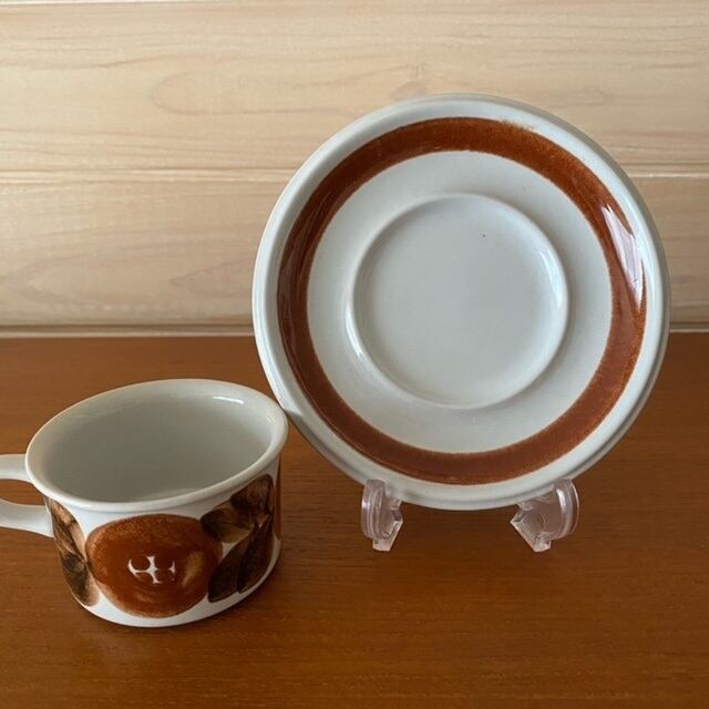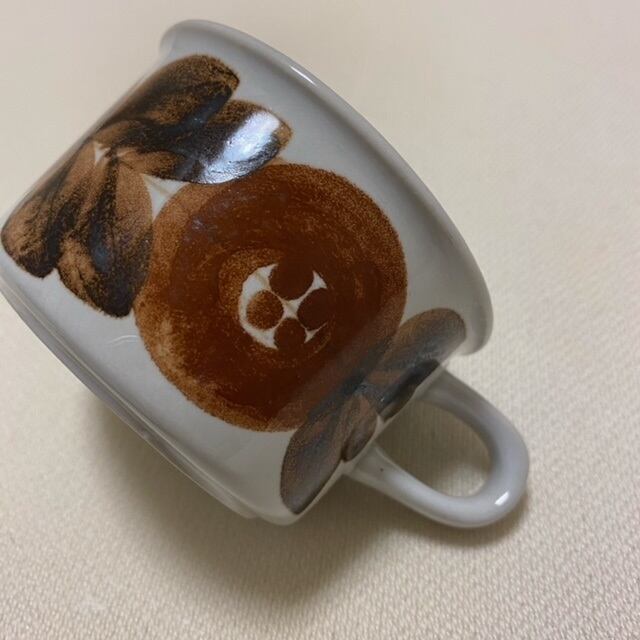 Rosmarinとはフィンランド語でローズマリーの意味。ぽってりとした茶色の花は絵付師によって描かれたもので、1点1点味わいが違うのが魅力です。ブラウンの落ち着いた表情はどことなく和の雰囲気も漂わせます。