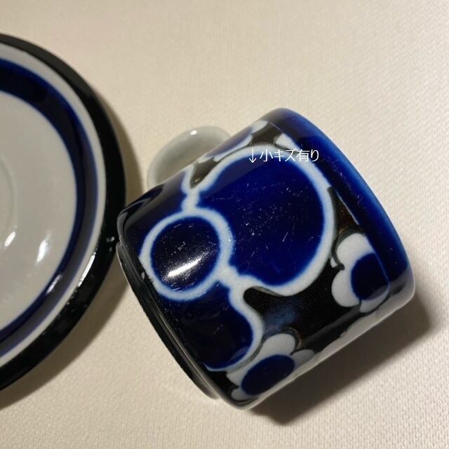 コンディション: カップ・ソーサーの表面とフチに細かい傷・長めの傷があります。カップ持ち手にペイント付着、表底の黒い部分に白い傷がありますが、ヒビ・欠けなく良好なヴィンテージコンディションです。