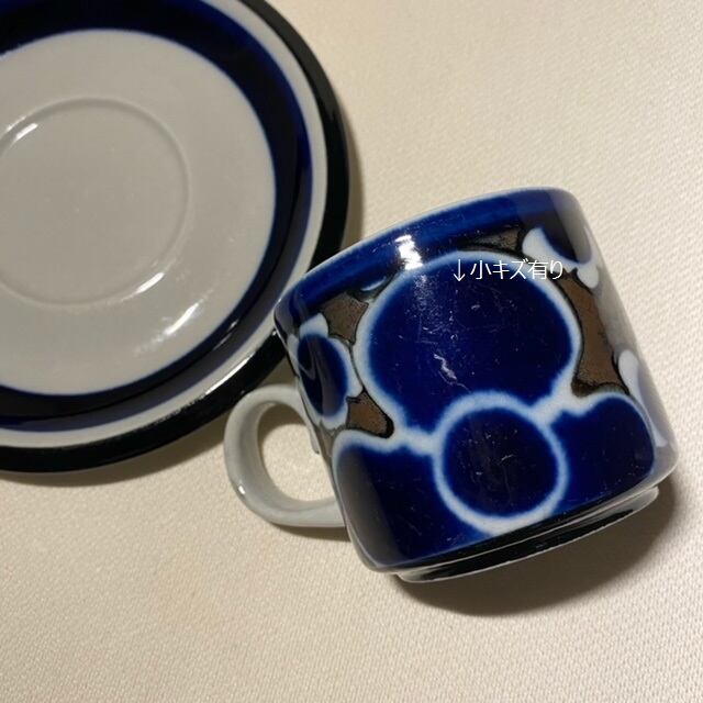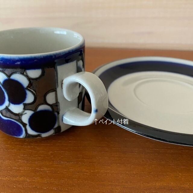 コンディション: カップの表面、ソーサーの表面とフチに細かい傷があります。カップ持ち手にペイント付着がありますが、ヒビ・欠けなく良好なヴィンテージコンディションです。