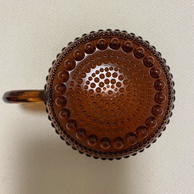 ガラスの粒でデザインされたしずくがとても美しく、水の波紋のように円を描いているのが特徴的です。ヴィンテージ品は現行品と比べてガラスの粒が大きく、くっきりとした印象です。