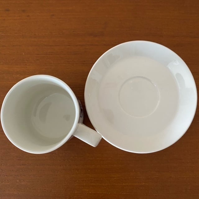 ブラウンとブルーの2色が展開されており、ブルーはブラウンよりも鮮やかで鮮烈な印象です。真っ白なソーサーがカップのお花を引き立てているのではないでしょうか。