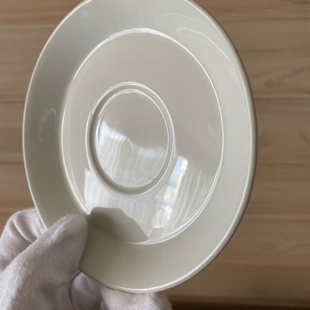 コンディション: カップ持ち手に小さな汚れがあり、ソーサー表面に小さな釉薬ロスがありますが、小傷は少なく艶があり、良好なヴィンテージコンディションです。このシリーズは、ソーサーのフチに焼成時の支柱痕が発生します。