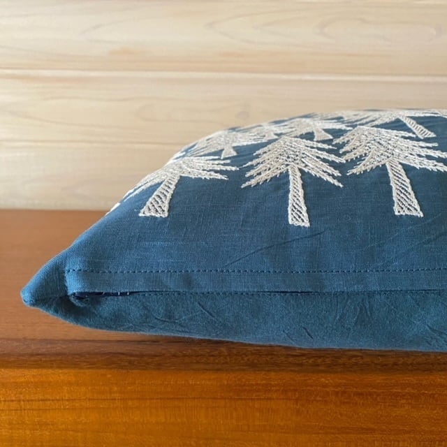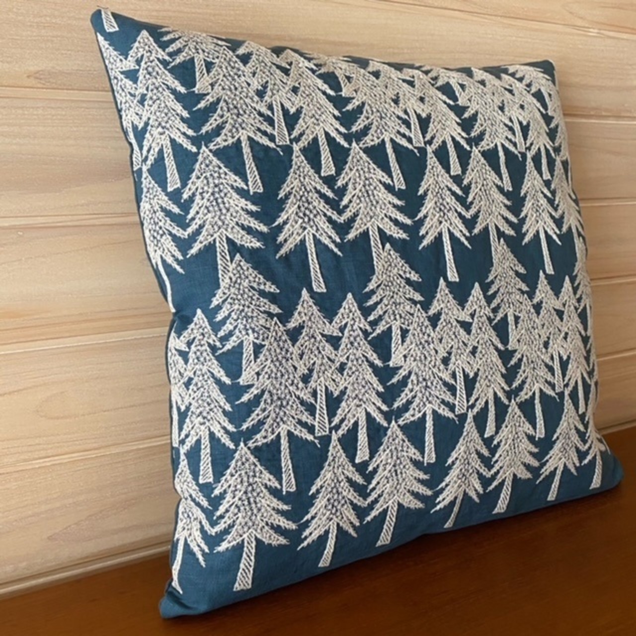静寂な森をイメージして作られたテキスタイルで、木々の密な刺繍で高級感漂う雰囲気です。