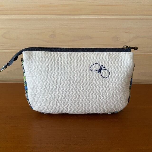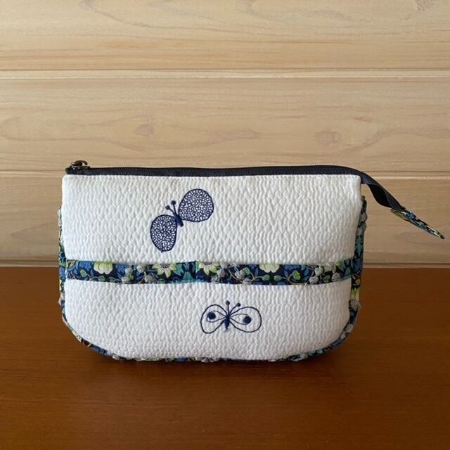 伊勢丹限定販売のstrawberry thief+tambourine生地とchoucho生地で製作したポーチです。