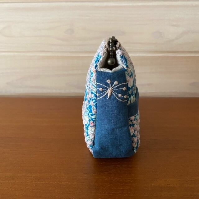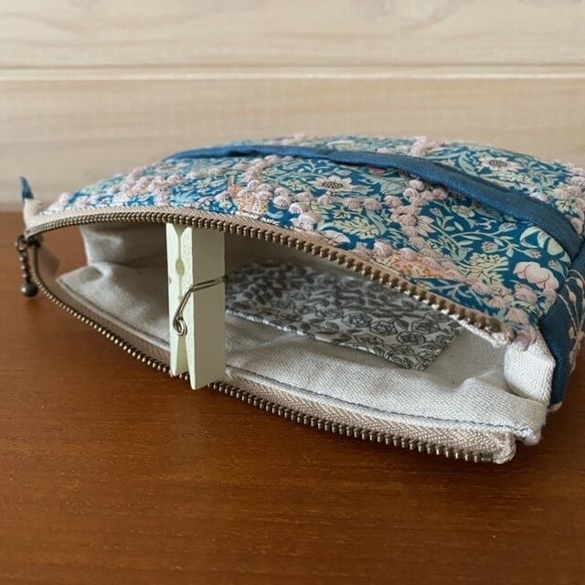 伊勢丹限定販売のstrawberry thief+tambourine生地とchoucho生地で製作したポーチです。