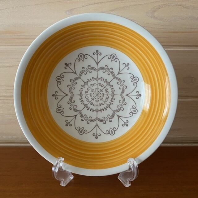 コンディション: プレート表面全体的に小傷、オレンジイエロー部分に黒点と小さい傷があります。また表面フチに若干の薄い汚れがあります。欠け・ヒビはなく良好なヴィンテージコンディションです。