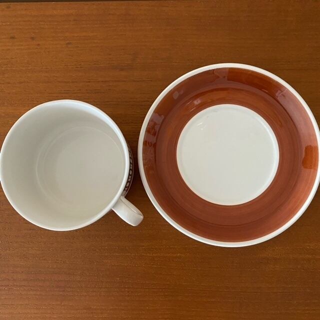 和のテーブルにも合いそうな落ち着いた色合いのティーカップ&ソーサー。スープカップとしてもお使いいただける大きさです。