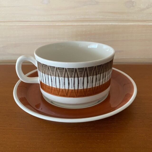 1960-1970年代に製造されたシリーズで、柔らかなブラウンとグレーのラインに葉のような柄がリズミカルにデザインされています。