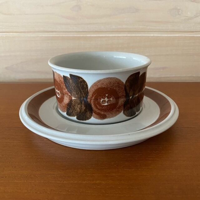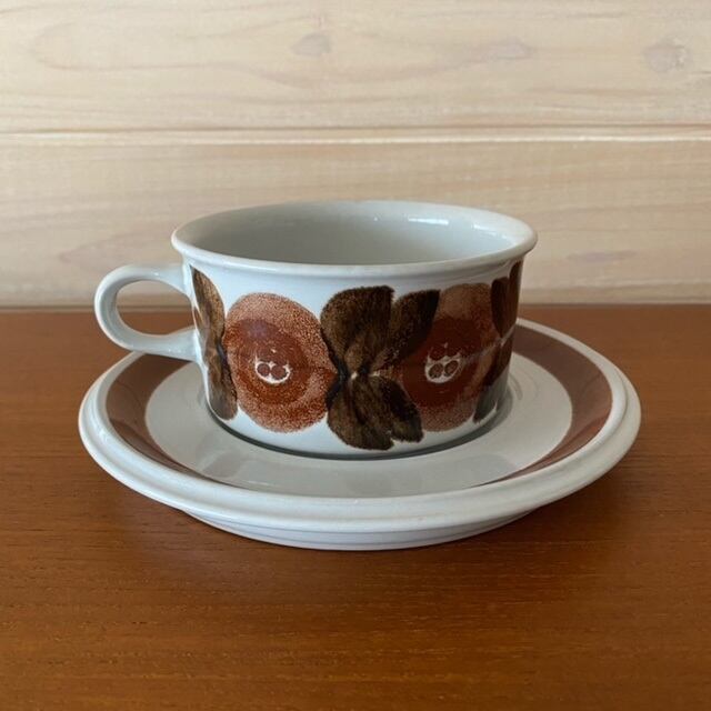 Rosmarinとはフィンランド語でローズマリーの意味。ぽってりとした茶色の花は絵付師によって描かれたもので、1点1点味わいが違うのが魅力です。