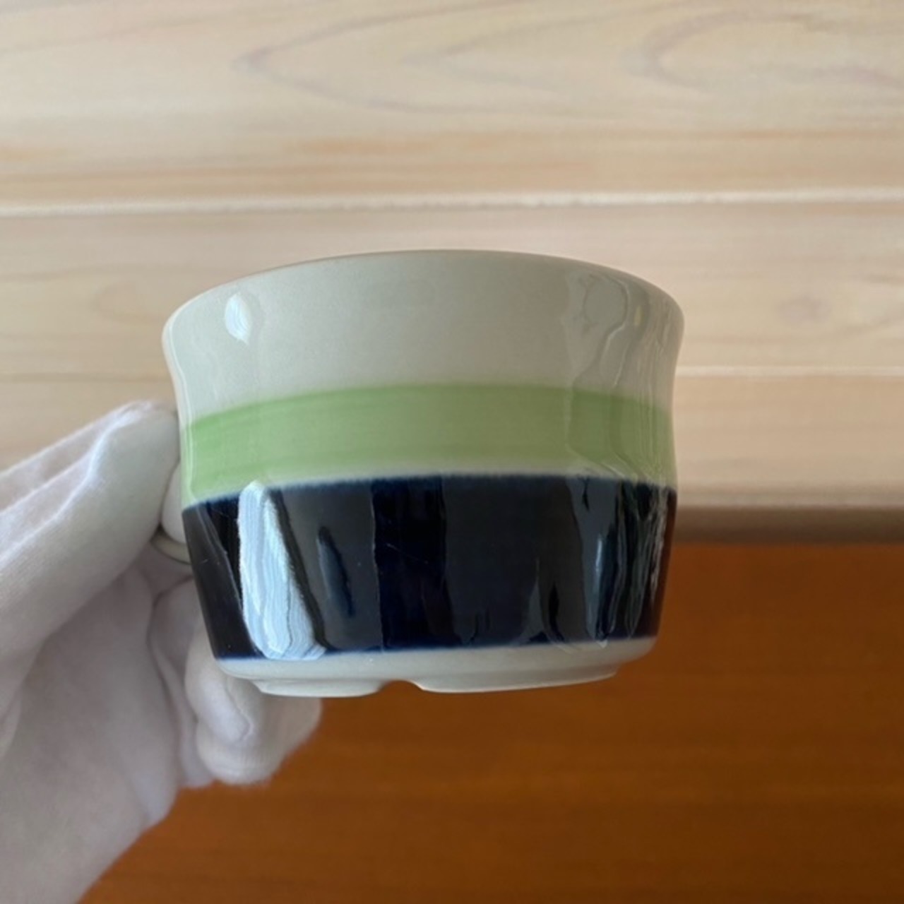 ミントグリーンとネイビーのラインがとても清々しく爽やかな印象の食器です。