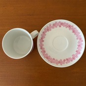コンディション:カップ裏高台の側面に剥がれがあります。またソーサー表面1か所に製造時に出来たと思われる5㎜程の継ぎ目がございますが、表面のみで釉薬の下にあるため、問題なくご使用いただけます。カップ、ソーサーとも小傷は少なく、艶があり良好なヴィンテージコンディションです。
