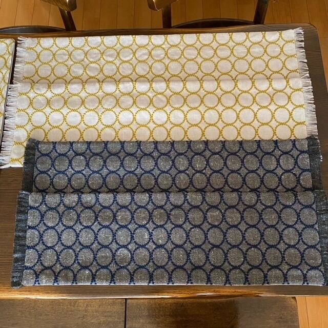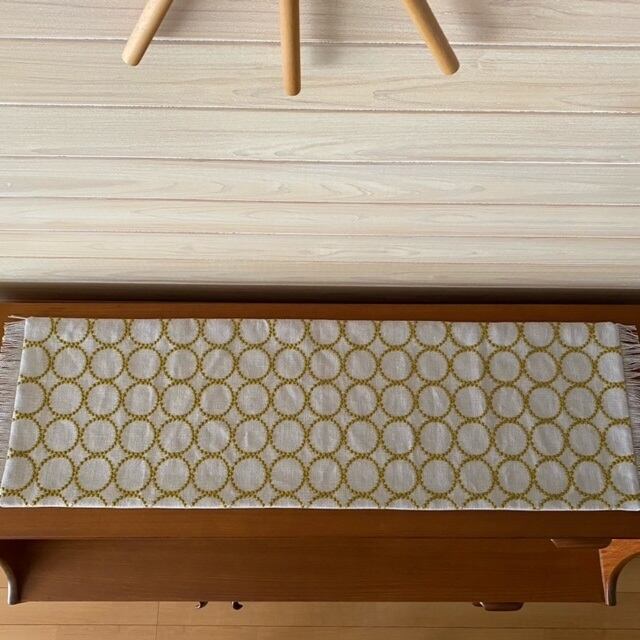 ミナペルホネンtambourine(ベージュ+マスタード) handmade テーブルセンタークロス①