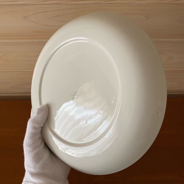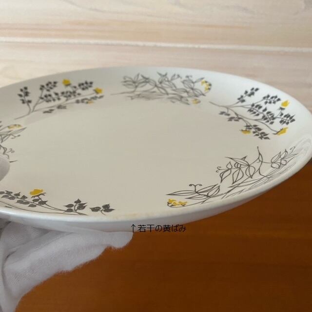 縁に約1.5cmの薄いペイントミス、支柱跡による若干の黄ばみ・凹みがあります。表面の小傷は大変少なく、ヒビや欠けの無い良好なヴィンテージコンディションです。