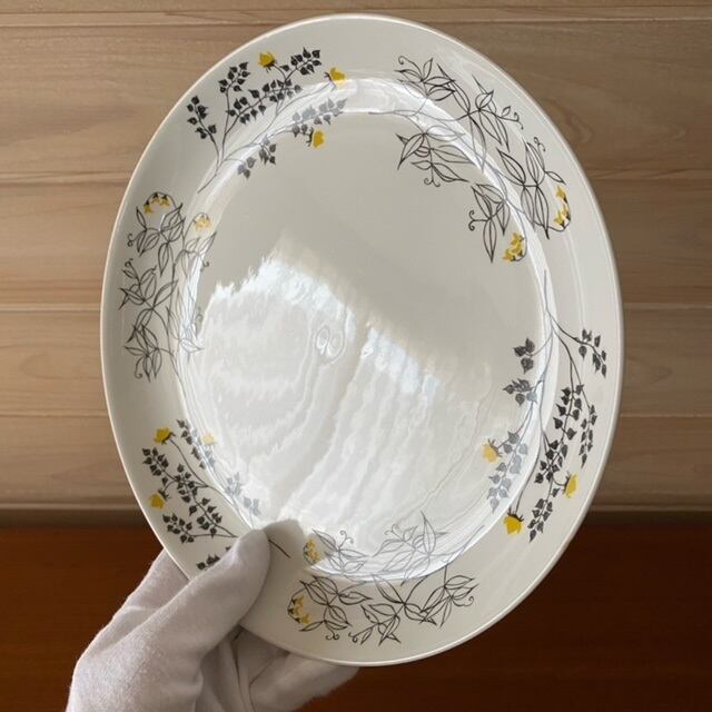 シックな野草柄が素敵なシリーズで、茎や葉が軽やかに描かれ、小さな黄色のお花が可愛らしく描かれています。テーブルに並べるだけで存在感があり、お料理を引き立てながら華やかなテーブルコーディネートが楽しめる素敵な食器です。