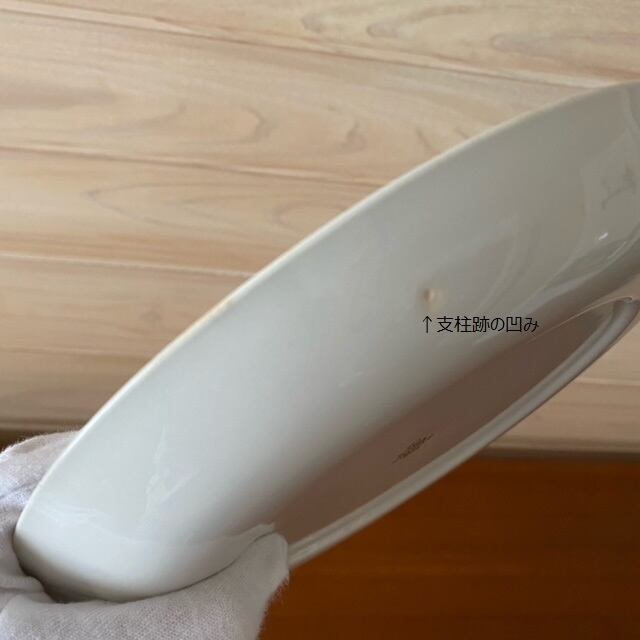 縁に支柱跡による若干の黄ばみ・凹みがあり、表面にライン状の薄いキズ(貫入ではありません)があります。表面に小さい突起がありますが、艶がありヒビや欠けの無い良好なヴィンテージコンディションです。