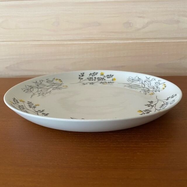 シックな野草柄が素敵なシリーズで、茎や葉が軽やかに描かれ、小さな黄色のお花が可愛らしく描かれています。テーブルに並べるだけで存在感があり、お料理を引き立てながら華やかなテーブルコーディネートが楽しめる素敵な食器です。