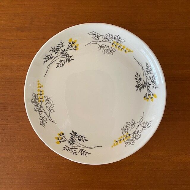 シックな野草柄が素敵なシリーズで、茎や葉が軽やかに描かれ、小さな黄色のお花が可愛らしく描かれています。テーブルに並べるだけで存在感があり、お料理を引き立てながら華やかなテーブルコーディネートが楽しめる素敵な食器です。