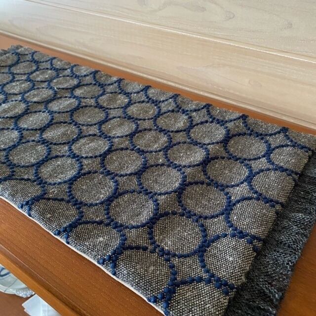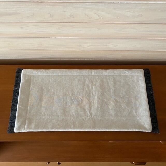 両サイドに同じ生地の端布で作ったフリンジを付けて、豪華な仕上がりにしました。