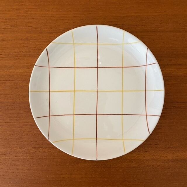 格子状の模様は茶色と黄色の可愛らしい色合いで、ライン1本1本手描きで描かれたあたたかみのある商品です。