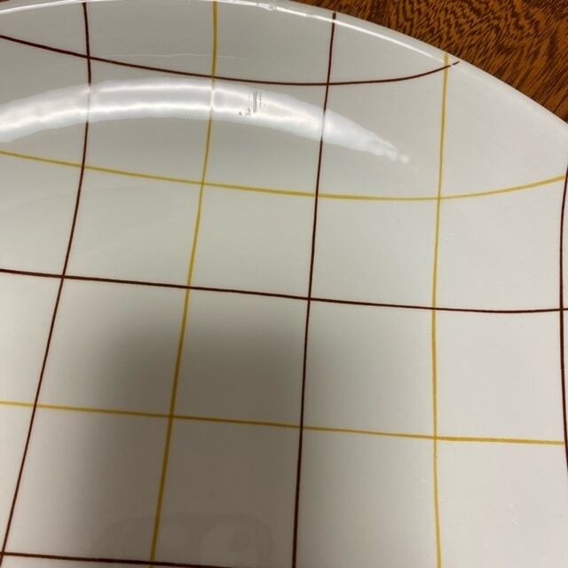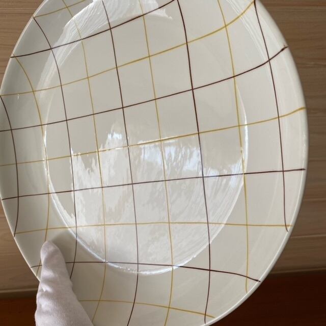 格子状の模様は茶色と黄色の可愛らしい色合いで、ライン1本1本手描きで描かれたあたたかみのある商品です。