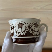 フォルムデザインはUlla Procope、デコレートはEsteri Tomulaです。チョコレート色で描かれた蓮の花がぐるりと取り囲んだかわいらしい作品。