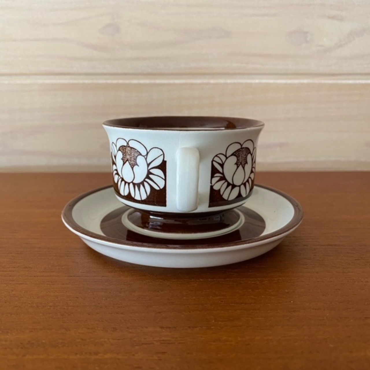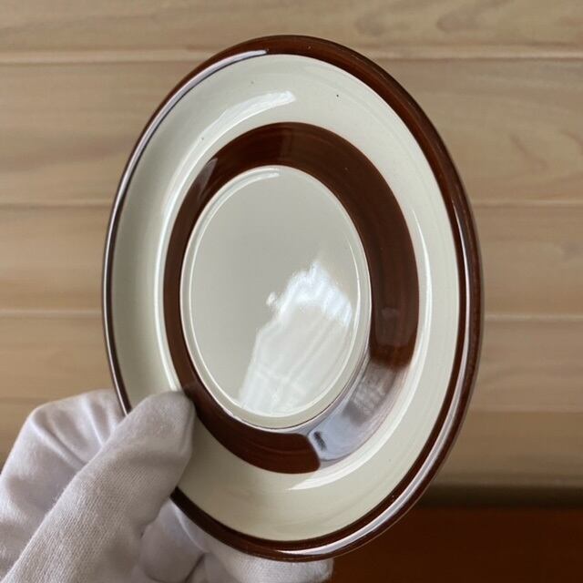 コンディション:カップ側面高台部分に製造時に出来たと思われる小さい凹みがあり、プレート表面に小さい黒点が3か所あります。プレート表面・裏面に若干の水垢跡・カップ裏面底付近に光にかざすとわかる水垢跡がありますが、小傷は少なく艶があり、全体的に良好なヴィンテージコンディションです。