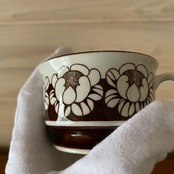 フォルムデザインはUlla Procope、デコレートはEsteri Tomulaです。チョコレート色で描かれた蓮の花がぐるりと取り囲んだかわいらしい作品。