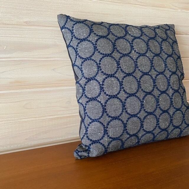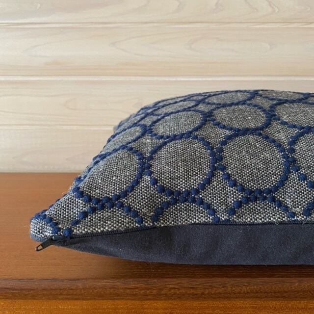 ミナペルホネンtambourine/タンバリン(チャコールグレー色にネイビー色の刺繍)の生地で作ったクッションカバーです。