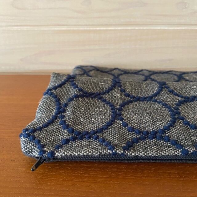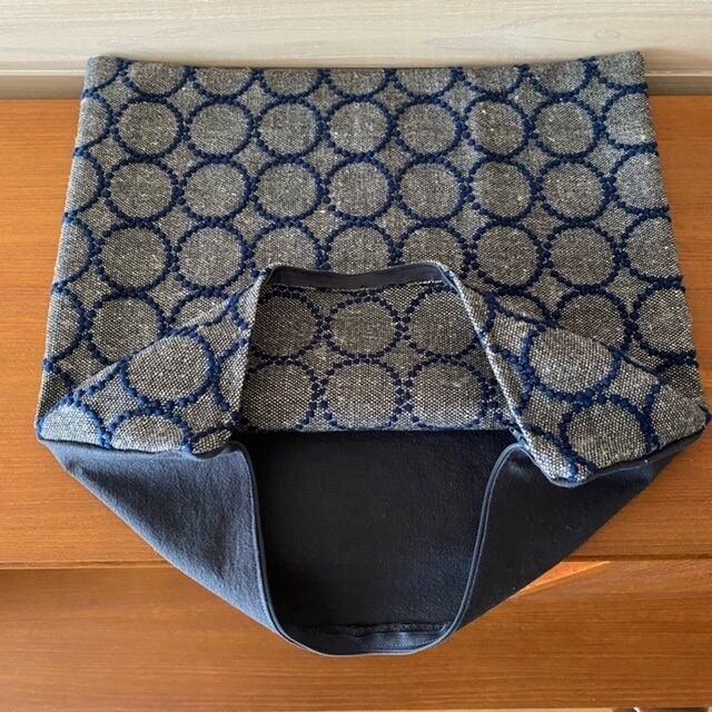 (外布)表面/ミナペルホネン tambourine(チャコールグレー生地にネイビー刺繍)リネン60%・ウール40%生地,裏面/綿生地(チャコール)