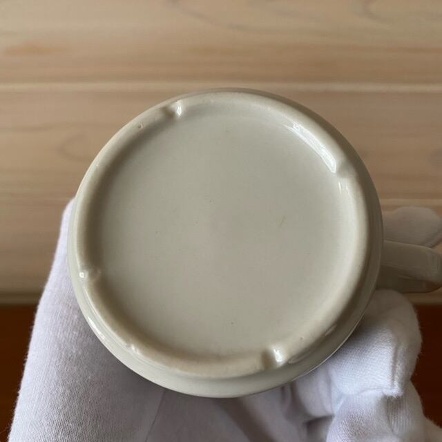 コンディション: ソーサー表面に若干の小傷・薄い茶点があり、ソーサー表面縁に釉薬下のラインがあります。(ヒビではございません) またソーサー裏面に突起と薄い黒点があり、カップ側面に若干の小傷とカップの裏面高台に釉薬下の凹みがあります。全体的に艶があり、問題なくご使用いただける良いコンディションを保っています。