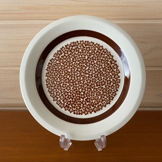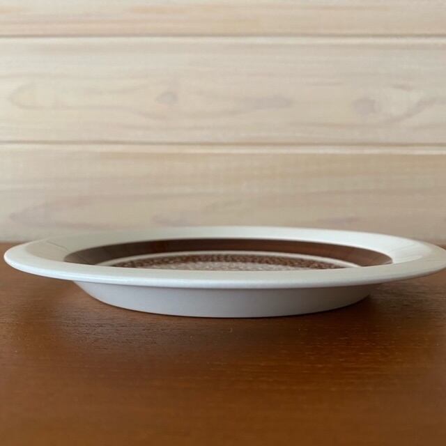 コンディション:縁に約2㎜の欠けがあり、裏面高台に薄く小さな着色があります。また他のプレートに比べて若干薄いブラウン色となっております。小傷は少量で艶もあり問題なくご使用いただけますが、約2㎜の欠けを考慮した価格となっております。