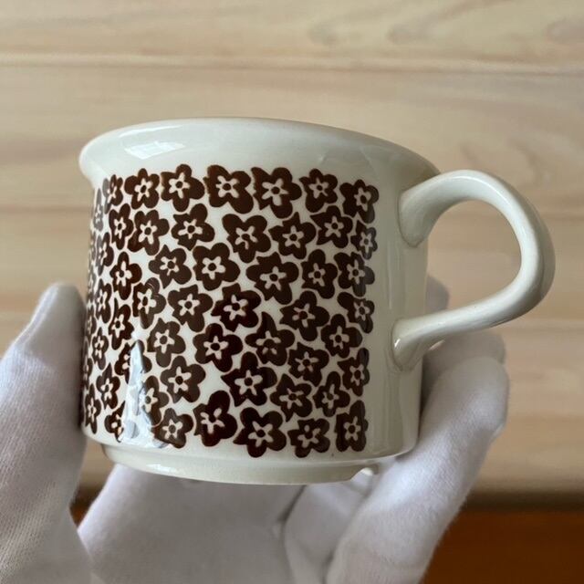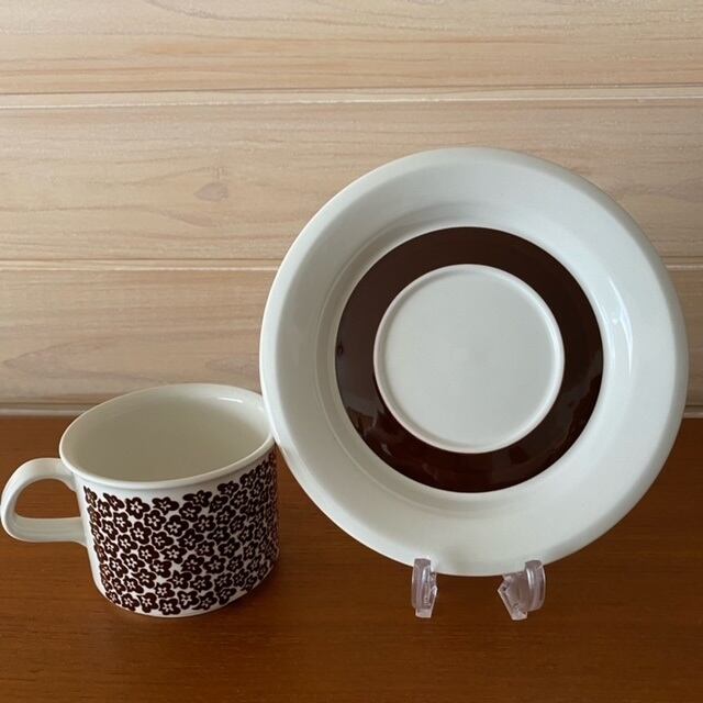 コンディション : カップ側面上部に釉薬下の突起があり、ソーサー表面ブラウン部分に小さい点状の凹みがあります。ソーサー表面のカップを置く部分に若干の小傷・擦れがございますが、その他の小傷は少なく艶もあり、綺麗なヴィンテージコンディションです。