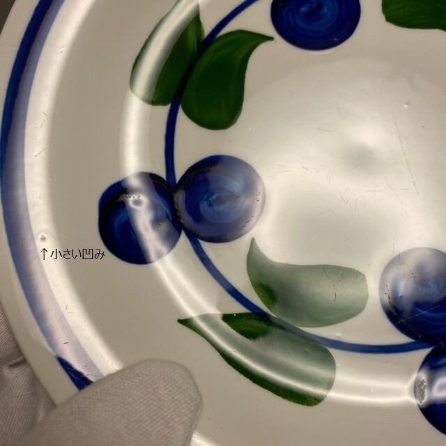 コンディション: 表面に若干のカトラリー傷があり、その中には長めのものもございます。また表面に小さな茶点・小さな凹みや突起、裏面に薄い黄ばみの箇所がありますが、全体的に艶があり、ヒビ・欠け・貫入の無い良いコンディションです。