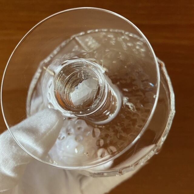 ※縁の凹凸、微細な気泡、ガラスのしわ・傷(特に足の底面)、異物の閉じこめ、歪みなどは製造時に出来たもので、このシリーズに頻繁に発生するものです。上記の目立たないものについては、省略している場合がございます。